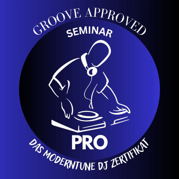 Die Moderntune DJ Zertifizierung Pro. In diesem Seminar mit Prüfung vermitteln wir die Grundlagen für mobile DJs wie betriebswirtschaftliche Aspekte (z.Bsp. Kalkulation und Auftragsbeschaffung), sicherheitsrelevante Grundlagen, Versicherungen, Aufbau und vieles mehr. Das Seminar ist kostenlos, Anmeldung per Email an Moderntune. Bei mehr Anmeldungen als Plätzen entscheidet das Los.